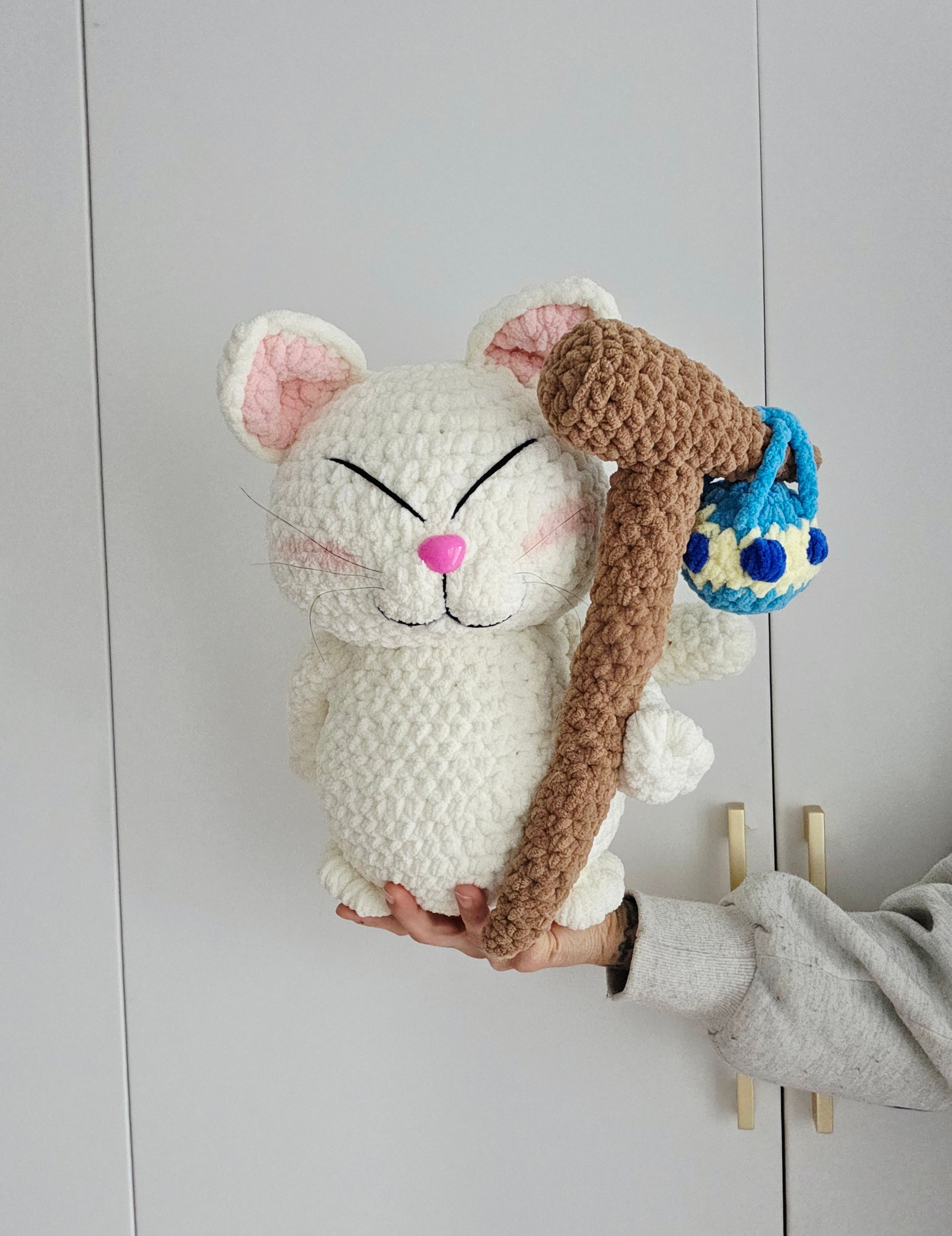 The finished Cat Elder r is ~38 cm high, made from soft Chenille yarn (Alize Velluto)